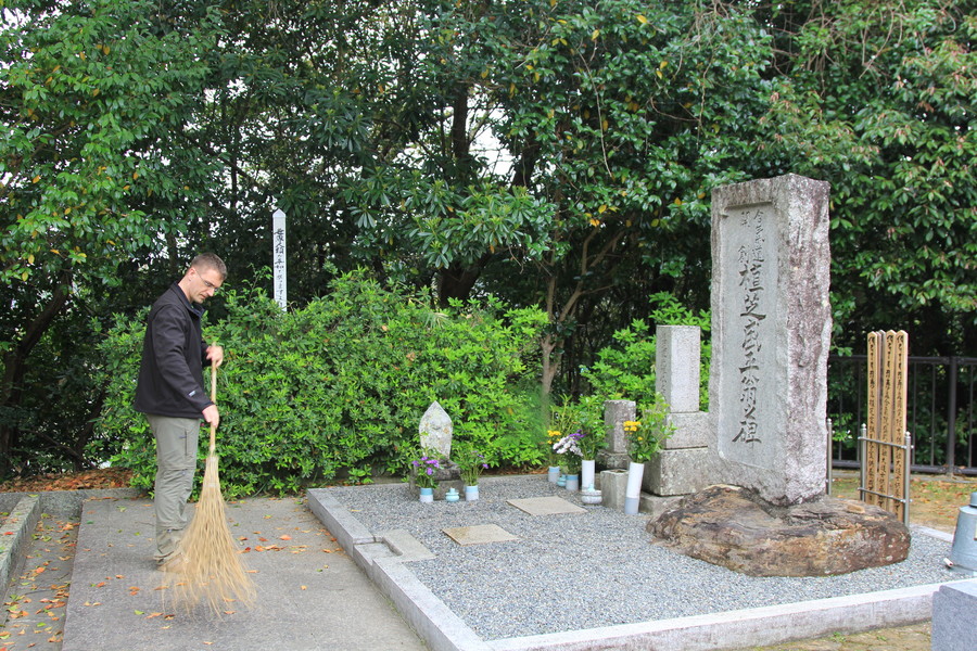 Die beiden besuchten auch O-Senseis letzte Ruhestätte in Tanabe. In Japan gehört es sich, dass die Schüler einer Schule das Grab des Meisters pflegen und dadurch ihren Respekt bezeugen.